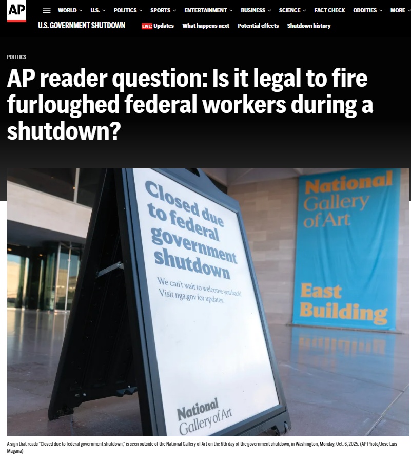 这是一个备受争议的问题,最终可能需要法院裁决。这是因为美国法律要求雇主至少在解雇前至少60天通知雇员。显然,在政府关闭期间裁员不符合法律截止日期。